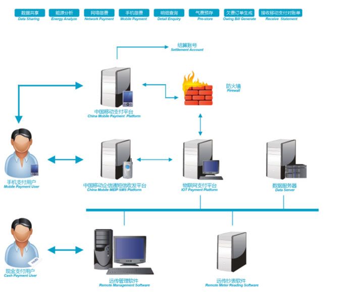 物聯網手機支付系統運用了先進的計(jì)算(suàn)機技(jì)術(shù)、無線網絡技(jì)術(shù)、該系統由物聯網燃氣抄控系統和(hé)手機支付系統兩部分組成。