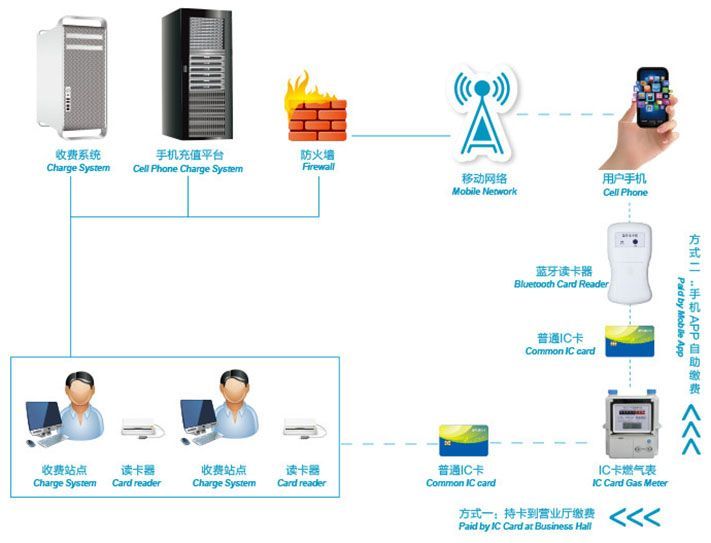 The mobile phone can connect with the card reader through Bluetooth. The IC card can be recharged by using the matching APP, and then the smart meter can be recharged.