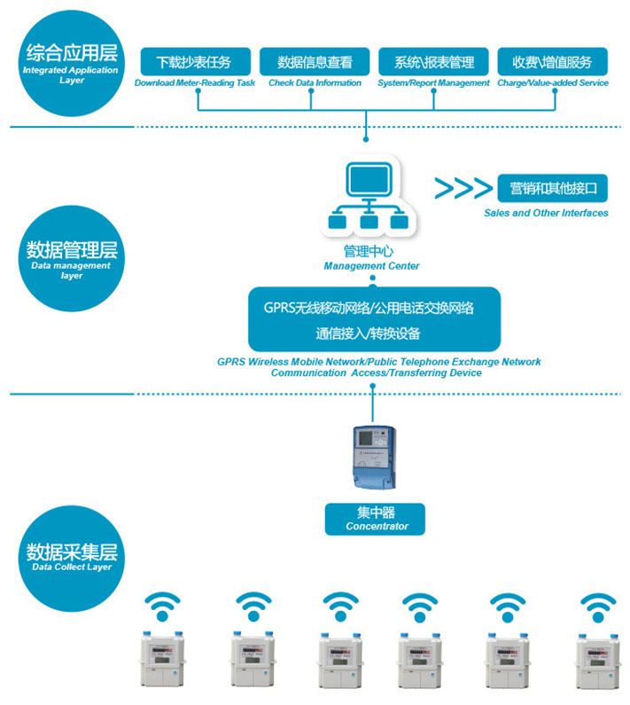 LoRa無線擴頻燃氣表及抄表系統,用于計(jì)量管道(dào)中的氣體(tǐ)流量,同時(shí)具有(yǒu)遠程抄控、遠程調價、階梯氣價結算(suàn)、在線監控、數(shù)據分析等功能。