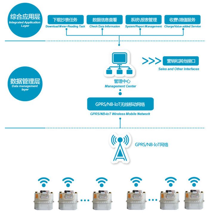 “互聯網+”燃氣表對機械表進行(xíng)升級改造後,可(kě)通(tōng)過終端自帶的攝像頭進行(xíng)字輪拍攝、圖像處理(lǐ)、數(shù)字識别,并通(tōng)過無線網絡将抄表結果上(shàng)傳到管理(lǐ)中心,管理(lǐ)軟件通(tōng)過無線通(tōng)信控制(zhì)“互聯網+”燃氣表的工作(zuò),實現監控終端的數(shù)據和(hé)狀态變化,支持收費管理(lǐ)、數(shù)據存儲、數(shù)據分析等功能;